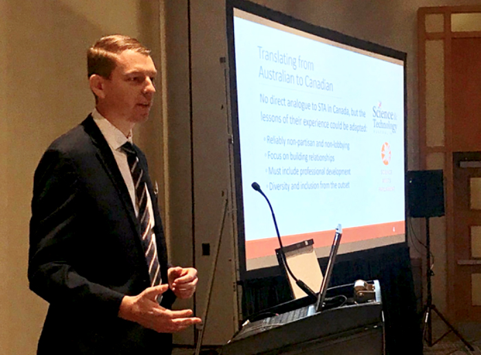 Royal Military College faculty member Captain Matt McTaggart shared his experience leading Canada’s first Science meets Parliament event in a panel discussion during 14-17 of February at the American Association for the Advancement of Science (AAAS) annual meeting in Washington, DC.