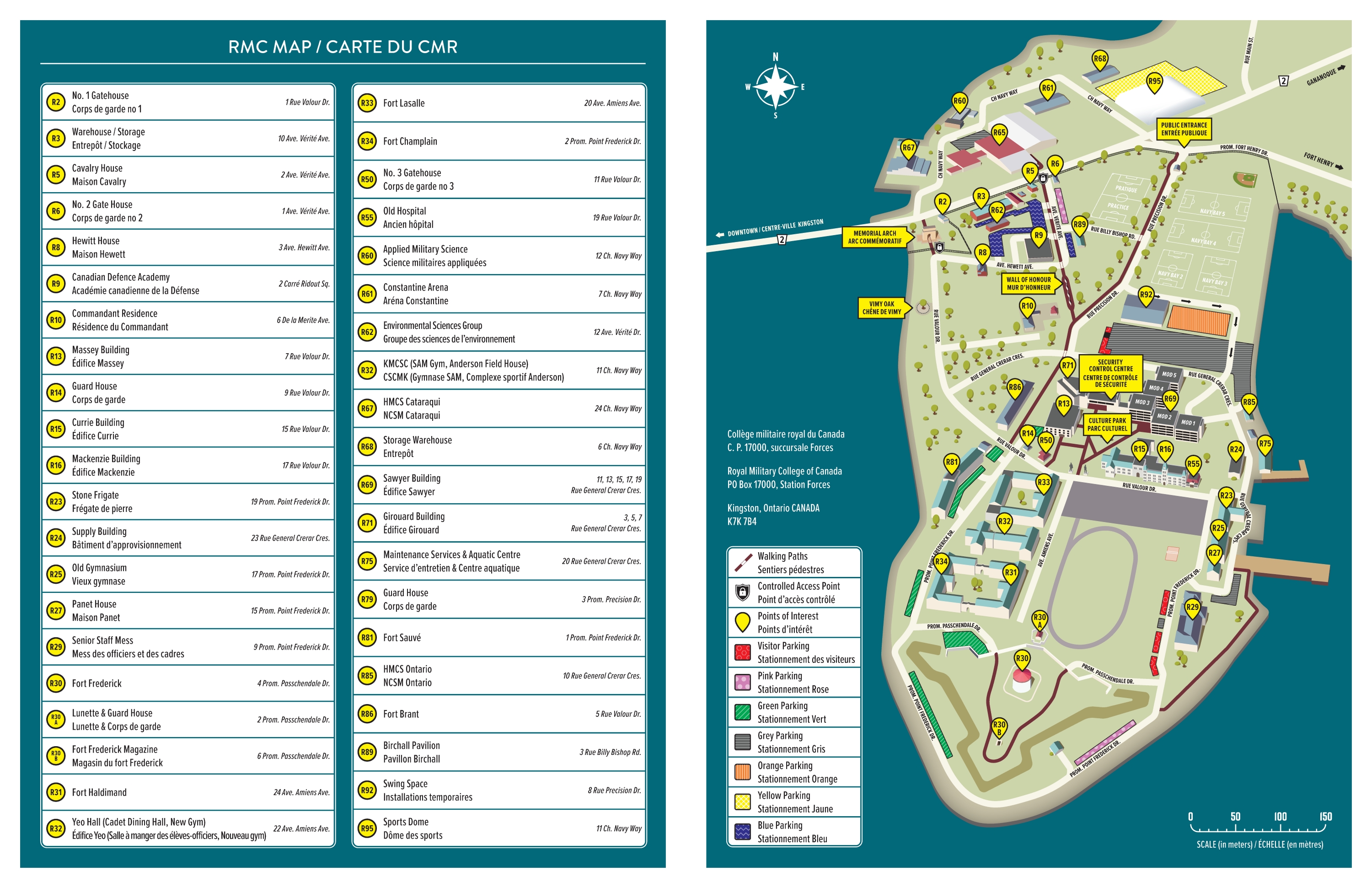 En suivant le plan du CMR et en plaçant votre papier de confirmation de la visite du campus de façon bien visible sur votre tableau de bord, garez votre véhicule dans le stationnement pour visiteurs et rendez-vous à la Maison Panet (R27), où vous attendra votre guide.